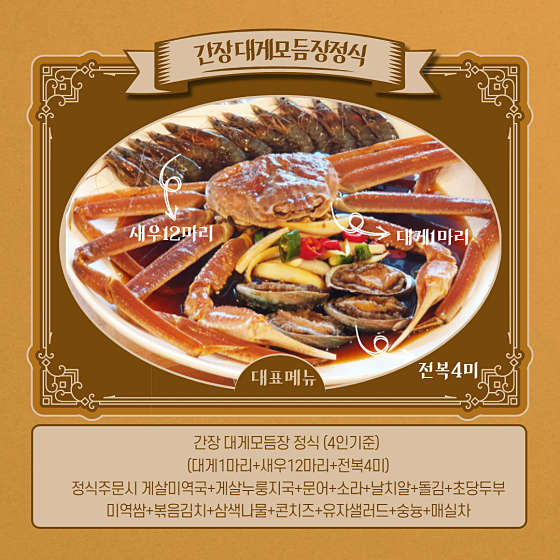 비법 간장에 절여 감칠맛이 가득한 홍게장, 그리고 탱글탱글한 전복장과 달콤 짭조름한 새우장까지!