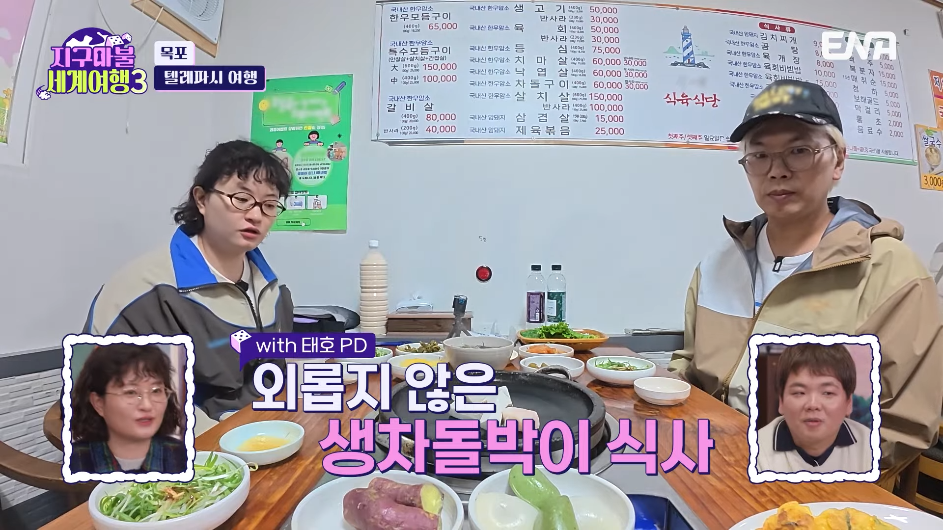 ENA 인기 예능 프로그램 ‘지구마불 세계여행 시즌3’ 목포편, 시청자들의 기대 속에서 계속되는 텔레파시 여행! 이번에는 특별 게스트 김태호 PD와 함께 원지가 선택한 숨겨진 고기 맛집, 바로 생차돌박이 전문점 '등대식육식당'입니다. 목포에서 육사시미로 불리는 생고기+차돌 조합, 과연 어떤 맛이었을까요? 인생맛집이라 불리는 이곳을 지금 소개합니다!