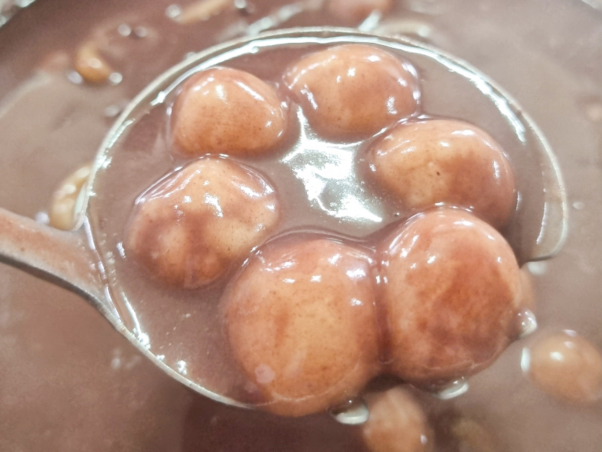 - 쫀득한 새알을 함께 떠먹으면 더욱 든든한 식사 가능.