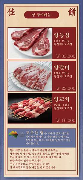 📌 넘버원양꼬치 16,000원, 양갈비 23,000원, 양등심 33,000원으로 다양한 양고기 요리를 즐길 수 있습니다.