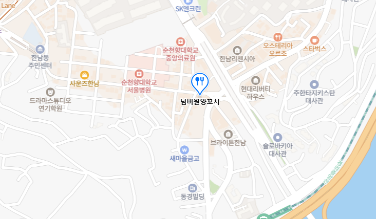 📍 넘버원양꼬치 (서울 용산구 대사관로 76 2층)입니다.