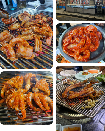 - 주문이 들어오면 주꾸미를 숯불이나 팬에 노릇하게 구워 완성합니다.
