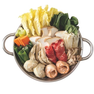 삼색 만두와 소고기가 들어간 양지 육수 베이스의 전골